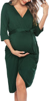 Ekouaer Womens Maternity Pregnancy Labor Robe Hospital Breastfeeding Gown (Dark Green, X-Large)