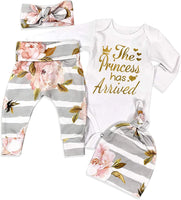 KANGKANG Newborn Baby Girl Clothes Hi I'M New Here Newborn Outfit Infant Romper Floral Pants Cute Baby Girl Outfits 4PC Set