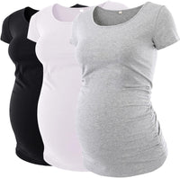 Liu & Qu Womens Maternity Tops Short Sleeve round Neck Pregnancy Shirts 3 Packs