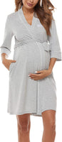 Fashion & Classic Maternity Nursing Robe with Pockets for Hospital