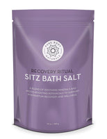 - Add 1 ounce of our Recovery Ritual salt blend to warm water filled 3/4s of the way in your sitz.